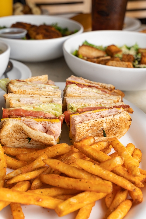 Ham Turkey Bacon American and Swiss cheese stacked with Lettuce tomato mayonaise on your choice of bread - white, wheat or marbled rye.
