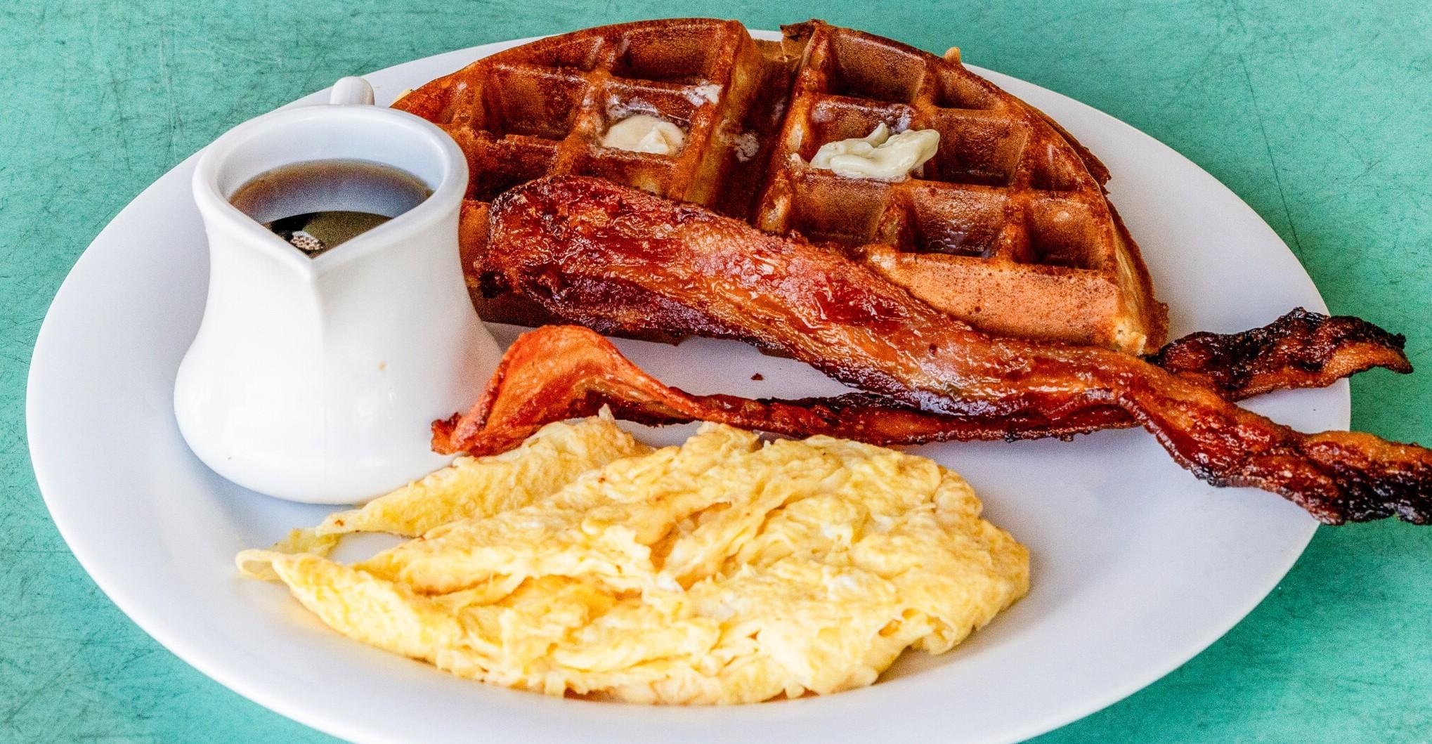 1/2 Waffle, Two Eggs and Two Strips of Bacon