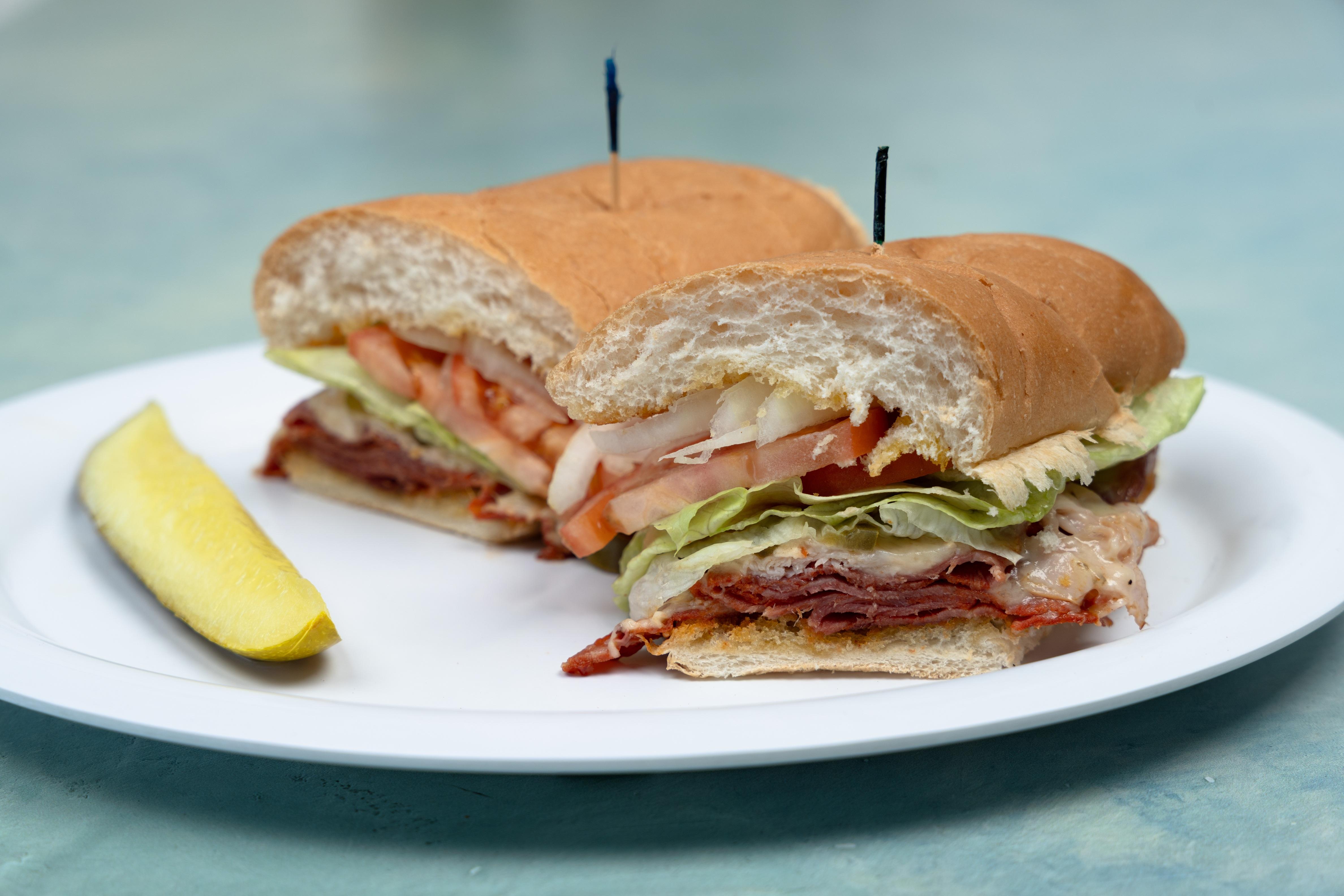 Roast Pork, Ham, Swiss Cheese, Yellow Mustard and Pickles